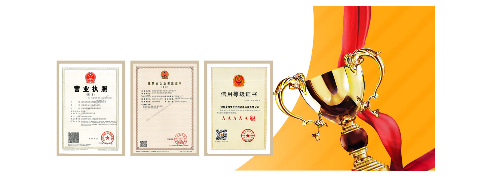 我公司沈陽金程萬隆水利建筑工程有限公司,位于沈陽市渾南新區(qū)南堤?hào)|路30號(hào),成立于2006年12月14日,公司現(xiàn)有資質(zhì)水利水電工程施工總承包二級(jí)、環(huán)保工程專業(yè)承包二級(jí)、市政公用工程施工總承包三級(jí)、施工勞務(wù)不分等級(jí)、水利工程設(shè)計(jì)行業(yè)丙級(jí)資質(zhì)。承攬業(yè)務(wù)范圍:建設(shè)工程施工、建設(shè)工程設(shè)計(jì)、建筑勞務(wù)分包。